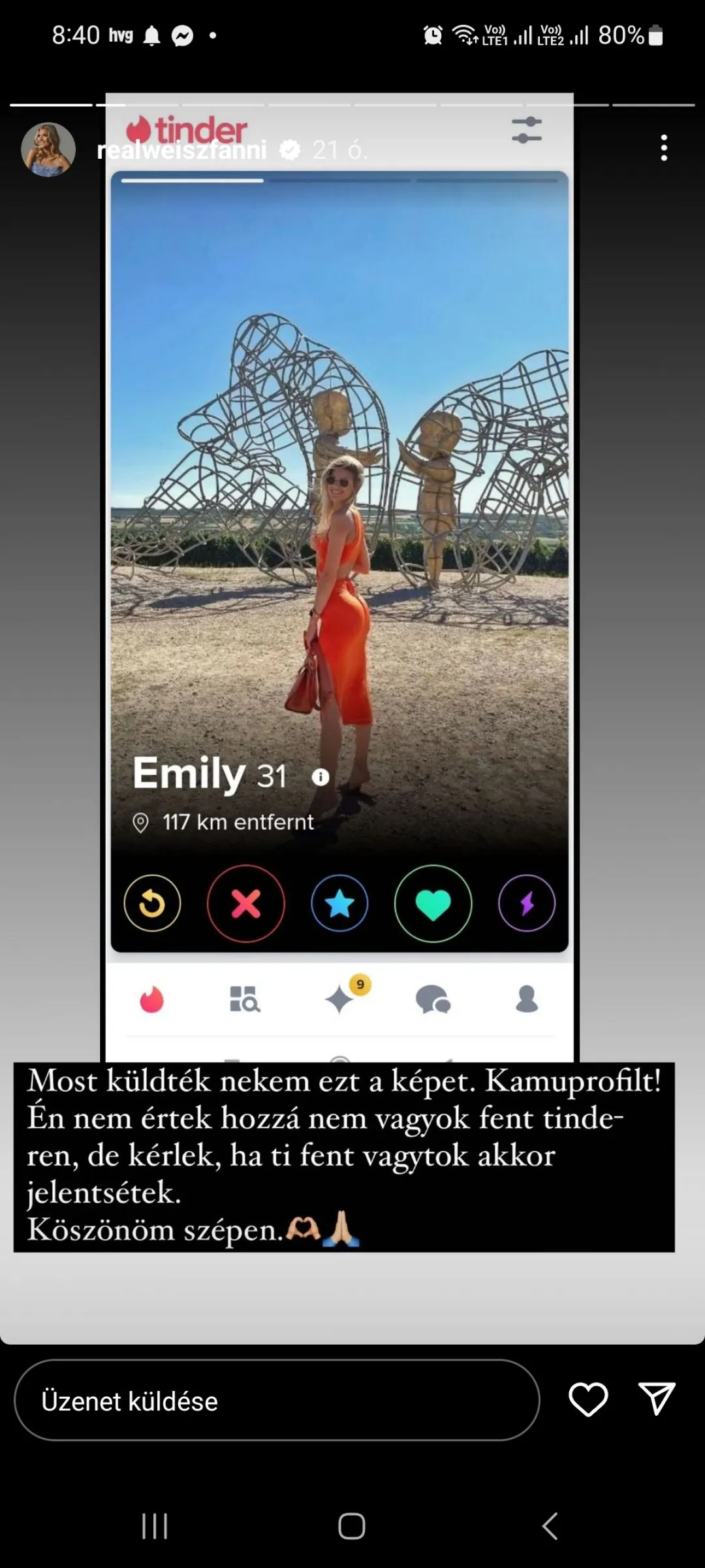 Meglepően kezdődött Weisz Fanninak az év eleje. Az egyik követője hívta fel rá a figyelmét, hogy egy Tinderes kamuprofilt hoztak létre a képeivel, ahol a ezeket használták. A siket szépségkirálynő képeivel már többször is visszaéltek.