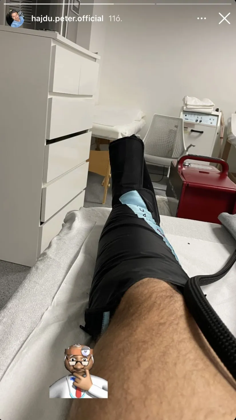 Ijesztő kórházi fotót tett közzé Hajdú Péter, amin csupán a bekötött lába látszódott.