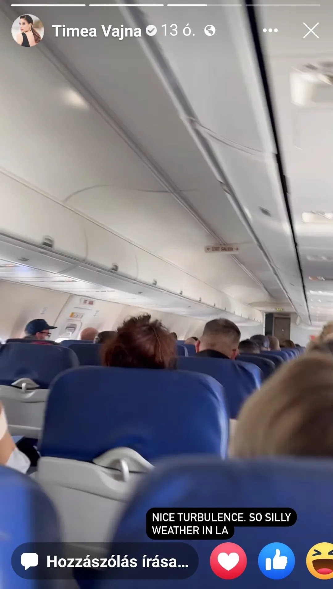 Igencsak meglepő videót tett közzé Vajna Tímea az Instagramon, egészen pontosan a 24 órán keresztül elérhető sztorijában. A rövid, de annál hatásosabb felvételen az látszik, ahogy a néhai filmmogul, Andy Vajna özvegye épp a turistaosztályon utazik, a gép pedig ijesztő légörvénybe kerül a magasban.