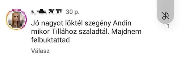 – Jó nagyot löktél szegény Andin, amikor Tillához szaladtál, majdnem felbuktattad – írta egy kommenteló Petihez címezve a megdorgálást. Azonban ezzel a véleményével úgy tűnik, egyedül maradt, hiszen mások szerint nem is történt ilyesmi.