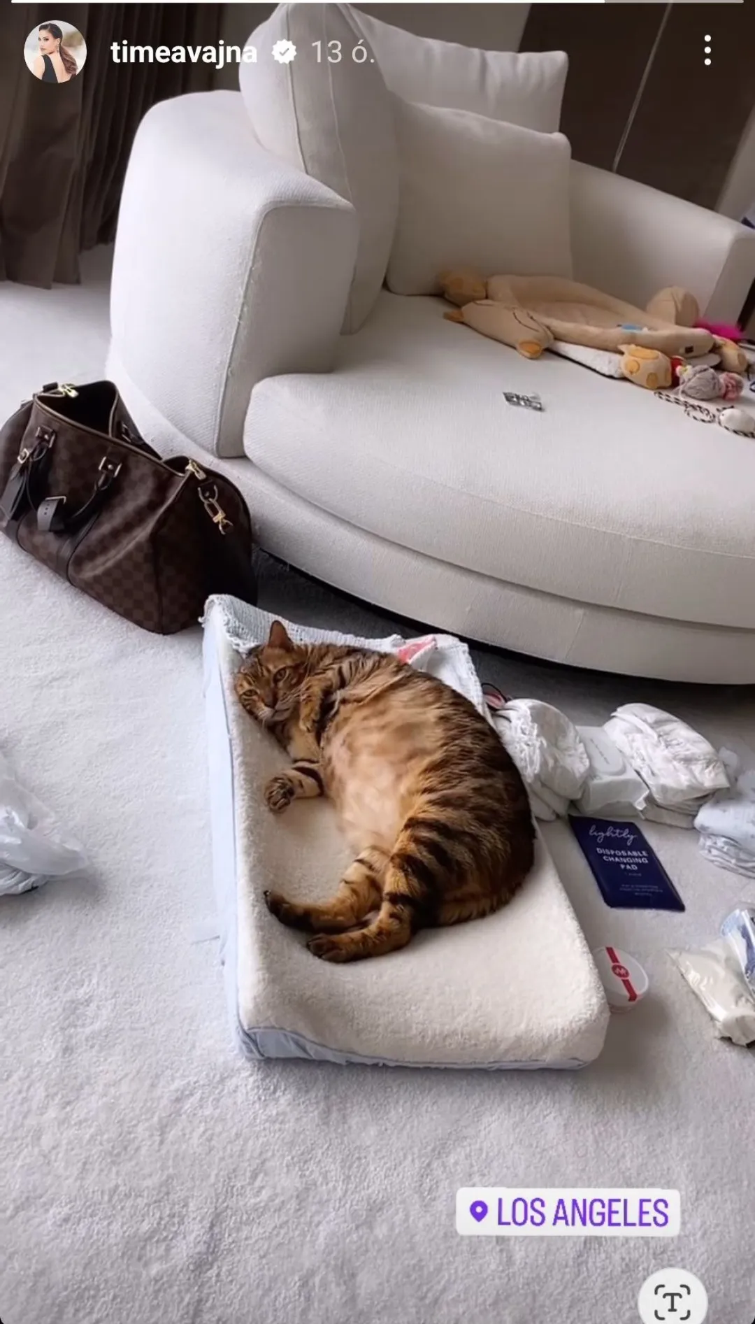 Addig is Timi, mivel imádja az állatokat, őket babusgatja, sőt, otthonát is szívesen megosztja velük. Így, Szimba, a házi macsek is otthonosan érzi magát a lakásban... Sőt, Timi azt is megmutatta rövid Story-videójában, hogy mennyire jól!