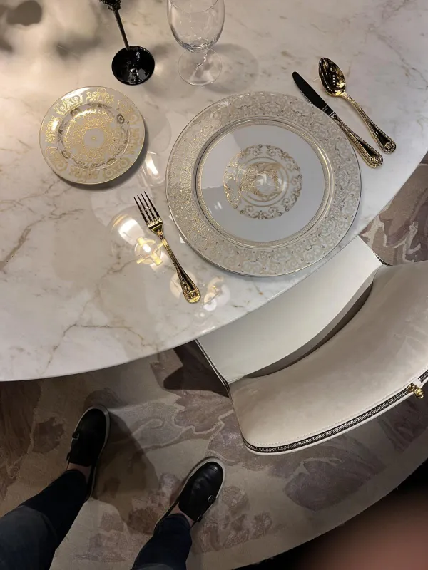 Rami egyik ilyen képén az volt látható, hogy éppen az ő általa készített rakott krumplit egy arany színű Versace evőeszközzel fogyasztja egy arany tálcáról. Egy ilyen evőeszköz készlet felfoghatatlanul drága, de részeire bontva egy darab villa kerülhet 180 ezer forintba is. Ha a teljes készletet meg akarja vásárolni az ember, darabszámtól függően 8-11 millió forintba is fájhat egy teljes ebédlőasztal díszítés.