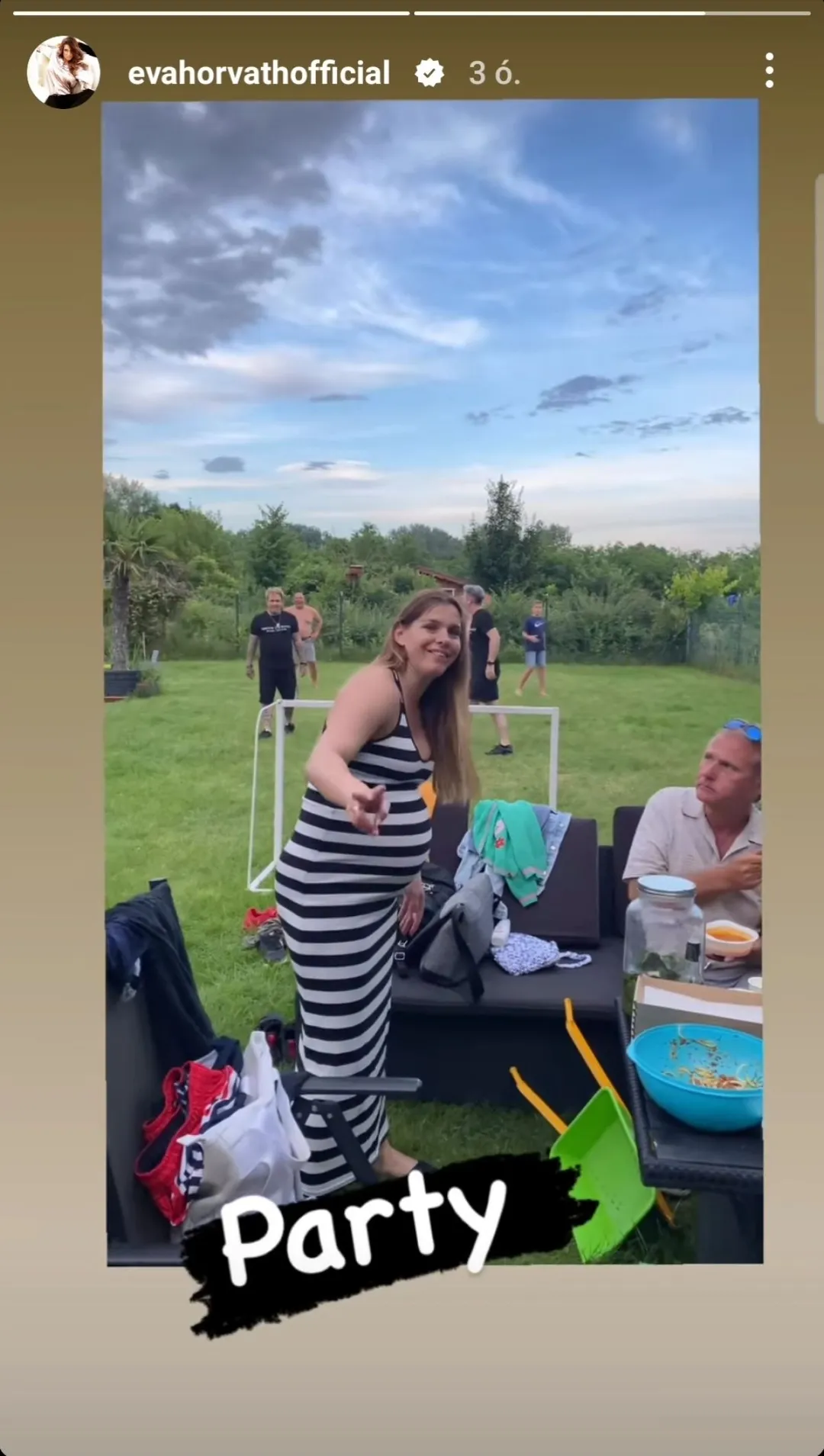 Legutóbb két hónappal ezelőtt írtunk arról, hogy milyen látványosan nő a szíve alatt az édes teher, azóta nem sokszor bukkant fel Heni úgy, hogy a gömbölyödő pocakja is jól látható volt. A boldog család a napokban egy hazai sztár otthonában tűnt fel, Horváth Évát látogatták meg, ahol néhány közös barátjuk társaságában kerti partit rendeztek. A képkockákon először az egykori szépségkirálynő a zene hangerejét próbálja beállítani, mialatt a kisfia mikrofont ragad és megmutatja, milyen tehetséges, ha éneklésről van szó. A felvétel készítője úgy gondolta, megmutatja, milyen jó hangulat uralkodik a kertben, majd a videót Éva mutatta meg a rajongóinak A szemfülesek rögtön kiszúrhatták, ahogy Dér Heni fekete-fehér csíkos ruhában beszélget az egyik barátjával. Mivel a ruha testhezálló, tökéletesen rásimul a várandós kismama méretes hasára. Heni láthatóan remekül érzi magát a bőrében, de kétség sem fér hozzá, hogy nem könnyű cipelni az édes terhet.