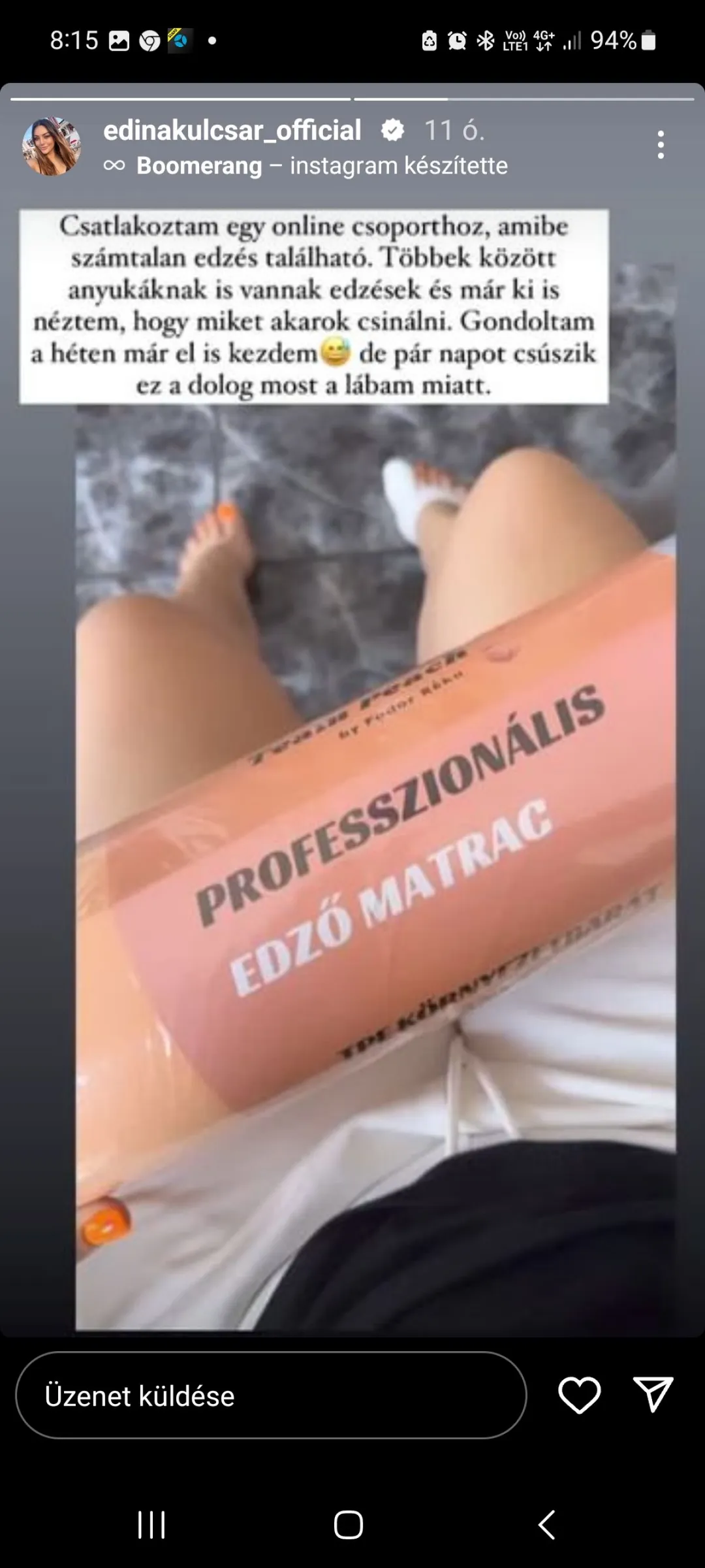 – írta ki a gyönyörű kismama, akit most a fogyási terveiben hátráltat a sérülése. Igaz, Edina kitartóan hangoztatja, hogy boldogan vállalja túlsúllyal is a testét, de ezek szerint a fogyás gondolatát nem vetette el. Számára most mégis a legfontosabb az, hogy sokat legyen együtt a kis Amarával, biztosan ezért szimpatizál az online edzésformával. A legtöbb anyuka nem tud elszakadni a csecsemőktől még egy órára sem, hogy elmenjen kondizni, így az online edzés jó alternatíva, még ha élményben nem is olyan, mint egy valódi csoportos óra. De hiába a jó terv, Edinának várni kell, amíg a lába is meggyógyul és terhelni tudja.