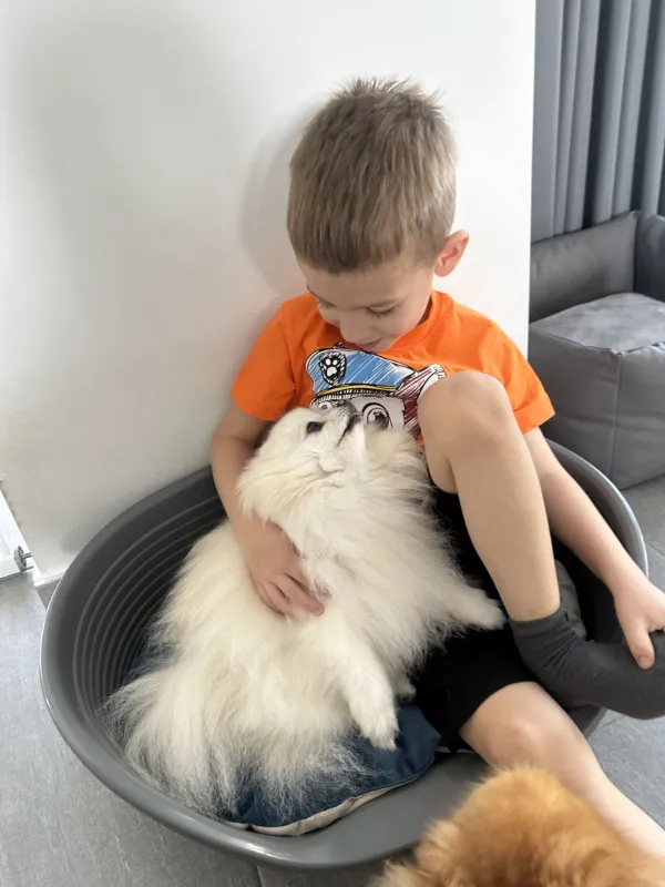 „Bennem sosem merült fel, hogy a gyerekek miatt menniük kellene! Rengeteg munka és lemondás, de annyi szeretetet adnak, hogy sosem válnék meg tőlük. A gyerekeket úgy nevelem, hogy óvatosan játsszanak velük, ne lépjenek rájuk, ne húzzák meg a farkukat. Beni már nagyon ügyesen el tudja látni őket, van, hogy a pórázt is közösen fogjuk.”