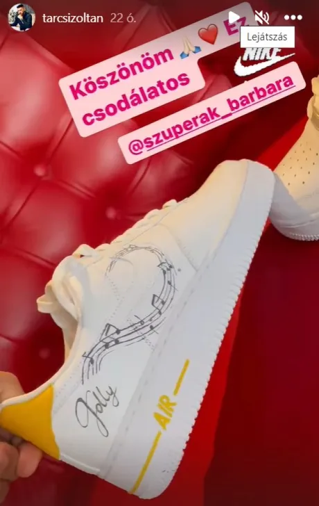 Egy egyedi tervezésű Nike sneaker boldog tulajdonosa lett Jolly, aki a szerelmétől, Barbarától kapta a különleges ajándékot. A cipő ára megközelíti a 100 ezer forintot.