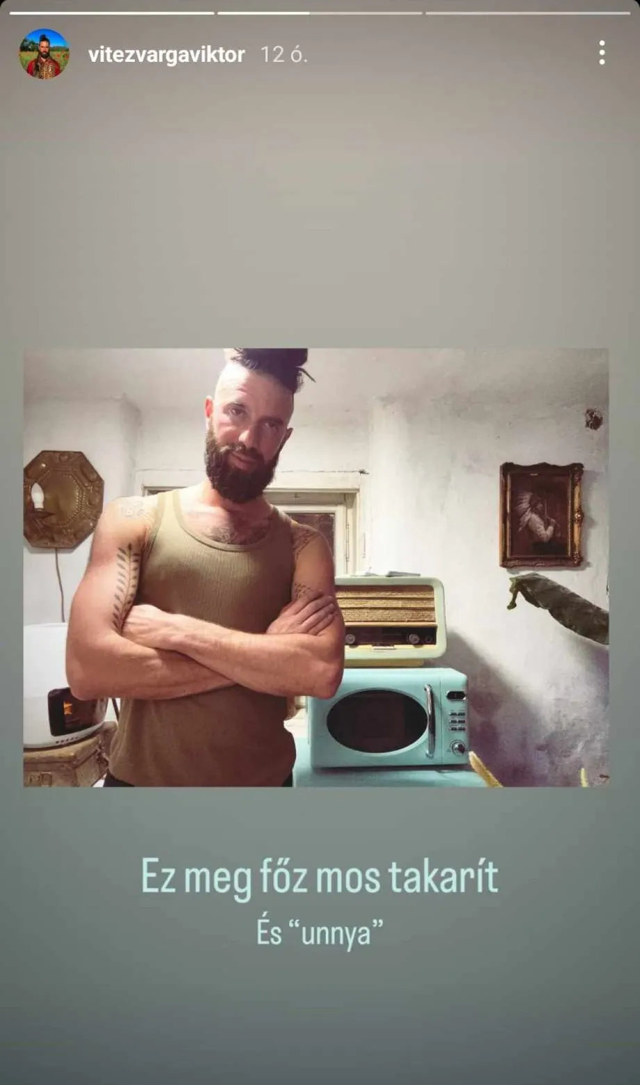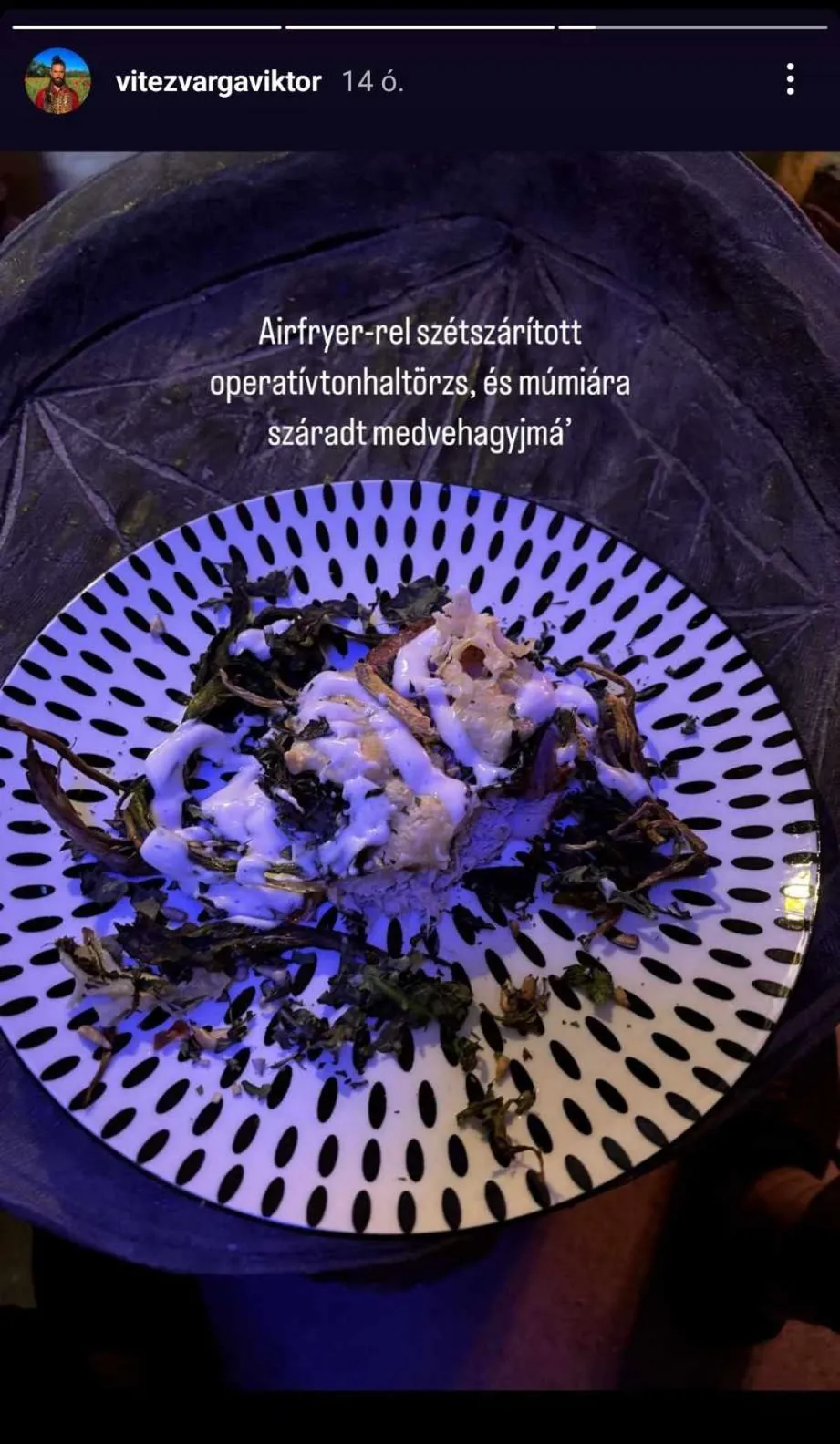 Ráadásul saját kezűleg készített vacsoráját is megmutatta követőinek, nem túl étvágygerjesztő leírással: „airfryer-rel szétszárított” tonhal és „múmiára száradt” medvehagyma. Úgy fest, bár szereti a remete életmódot, a társaság, különösen egy gondoskodó női kéz hiányzik neki.