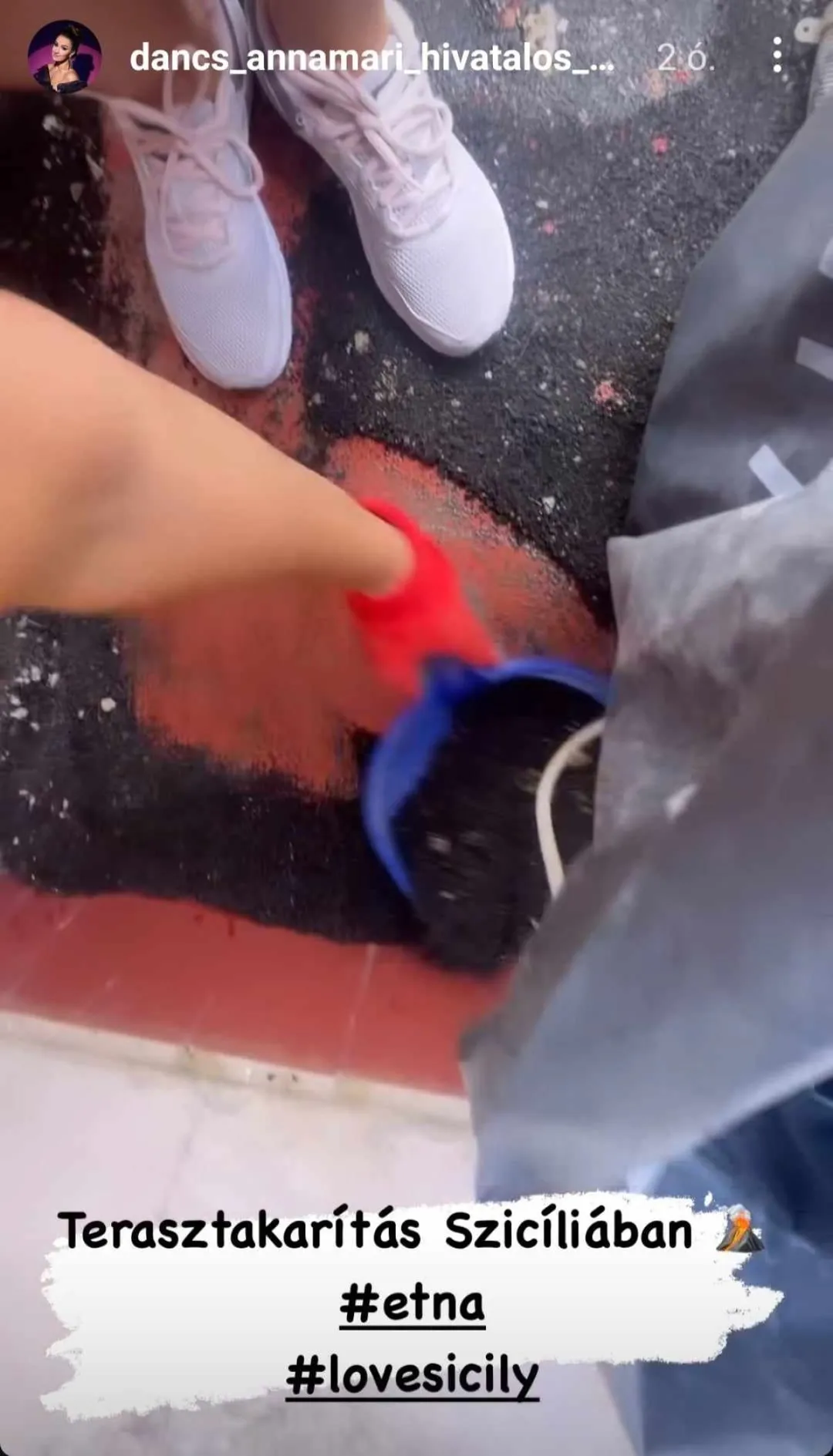 Bár az időjárásra nem lehet panaszuk, hisz Taorminában jelenleg 31 fokot mérnek, azért van, ami megnehezíti a színésznő mindennapjait. Nevezetesen a mostanság ismét komoly aktivitást mutató működő vulkán, az Etna. A tűzhányót ugyanis egyáltalán nem érdekli, hogy ki költözött a szomszédságába, úgy ontja magából a koromfekete hamut, mintha nem lenne jobb dolga. Így Annamari nem tud mást tenni, mint napi szinten felsöpörni a teraszt.