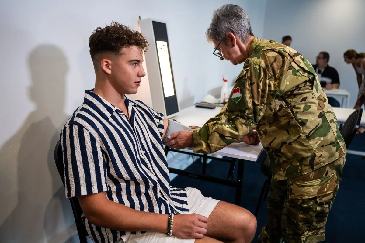 Ma volt az interjú, ahol el kellett mondanom, miért szeretnék tartalékos katona lenni, és egészségügyi vizsgálat is volt. Megmérték a vérnyomásomat, súlyomat, milyen magas vagyok és EKG-t is csináltak. Ezek után aláírtam a hivatalos papírokat. Szerencsére sokan voltak rajtam kívül is, voltak velem egyidősek is, meg idősebbek is. Jó látni, hogy nem csak számomra ilyen fontos a haza védelme!