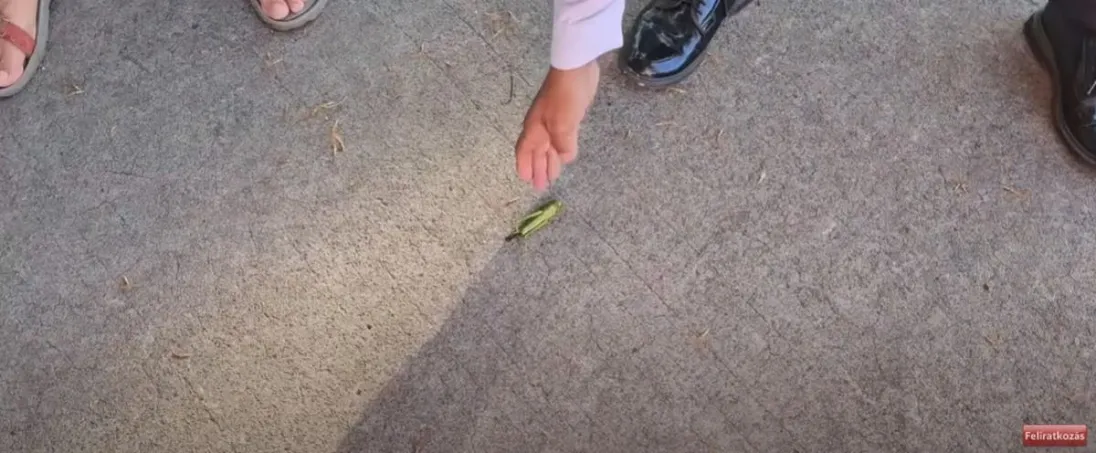Nóri és a stáb épp egy helyi parkban sétált, megfelelő forgatási helyszínt keresve, amikor az orruk előtt a földre zuhant egy iszonyatos méretű sáska. A szörnyetegről először nem tudta a csapat megállapítani, hogy élő vagy holt lehet, és nem is mert senki hozzányúlni egészen addig, amíg be nem avatkozott egy helyi rendőr. Míg a magyarok vékony botokkal próbálták lökdösni, addig az egyenruhás puszta kézzel megfogta és közölte, hogy ez az állat sajnos már elhunyt. A halálhírtől egyébként nem lett szomorúbb a stáb, sőt.