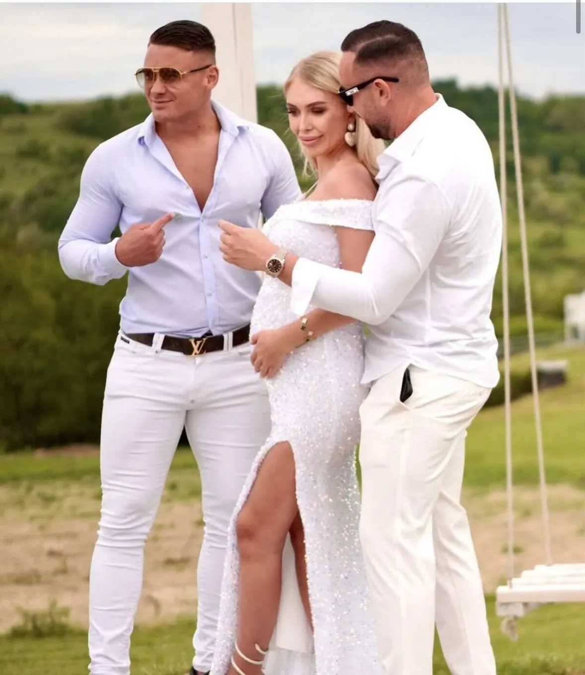 Egy szemfüles felhasználó a Redditen osztotta meg Tuvic Aleksandra képét, amin a párjával és PSG Oglival szerepelnek a babaváró bulin. Persze nem Szandiba vagy a leendő apukába kötöttek bele, hanem a „mindig pacek” Ogliba. A TikTok-sztár a kismamával és kedvesével fotózkodott, de a rajongók kiszúrtak egy apró, de annál feltűnőbb bakit. Feltételezésük szerint a szabadszájú celeb nem sokkal korábban járhatott a mosdóban, ugyanis a nadrágján egy kicsi, de annál árulkodóbb folt fedezhető fel. Igen, pontosan ott, a slicce alatt.