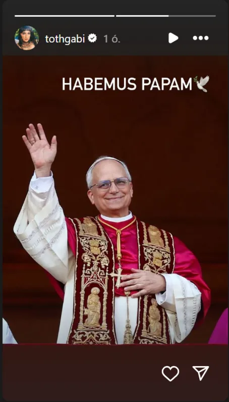 Mint arról a Bors beszámolt, a hírre Tóth Gabi is reagált a közösségi oldalán. 24 óráig elérhető Instagram-történetében két szóval üzent az új pápa megválasztása kapcsán.