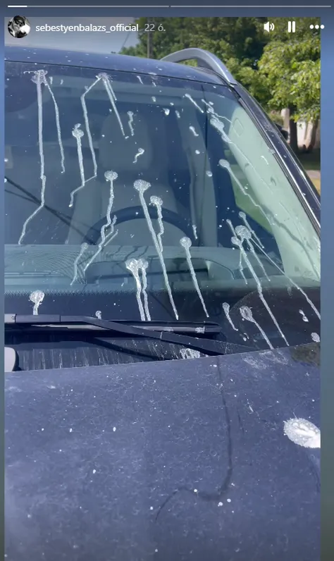 Most viszont úgy néz ki, a természet megbosszulta a híresség bátor viccelődéseit, ugyanis Balázs 24 óráig elérhető Instagram-történetében tette közzé, hogy valaki megrongálta a kocsiját. A videóból az is kiderül, hogy nem is egy tettes, hanem több is volt. Az elkövetők gólyák voltak, akik csúnyán elbántak Sebestyén Balázs autójával, aminek ő nem kifejezetten örült: