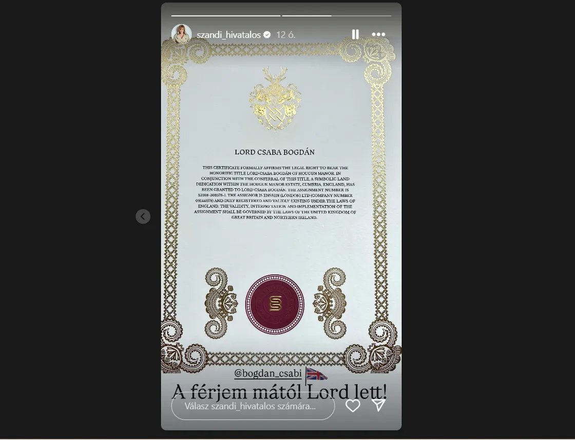 "A férjem mától Lord lett!" - dagad a büszkeségtől Szandi