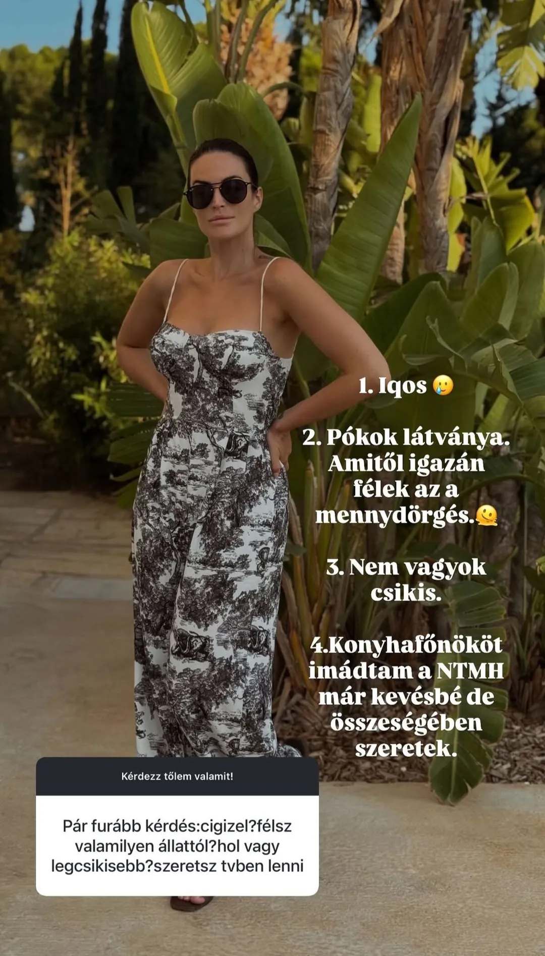 – válaszolt a modell arra a kérdésre, hogy: „Szeretsz TV-ben lenni?”. Emellett félelmeiről és a dohányzásról is beszámolt rajongóinak Alföldy Anna.