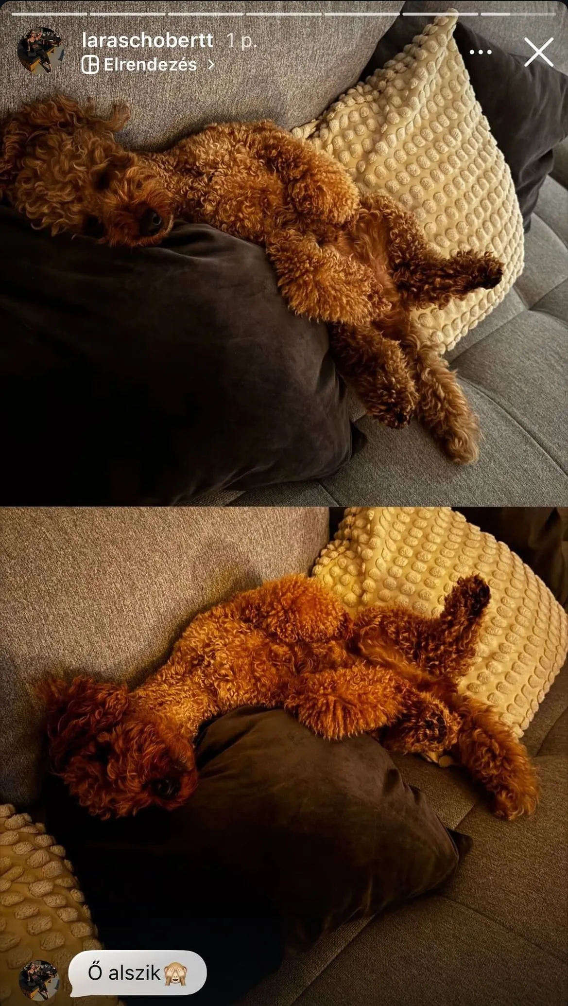 Úgy tűnik, Schóbert Laránál is beütött az őszi lazulás – de most nem ő, hanem kis szőrmók kedvence vitte el a show-t! A fotón a cuki kutyus totális nyugalomban hever a kanapén, mintha csak egy puha wellnessnapra jelentkezett volna be. A bundás kis modell minden bizonnyal tudja, mi az igazi pihenés: párnahegyek között, hason fekve, teljesen átadva magát az álomnak. Lara csak ennyit írt a fotóhoz: „Ő alszik ” – de ez a két szó mindent elmond. A kommentelők pedig olvadoznak: ki ne szeretne így ejtőzni egy borongós őszi estén?