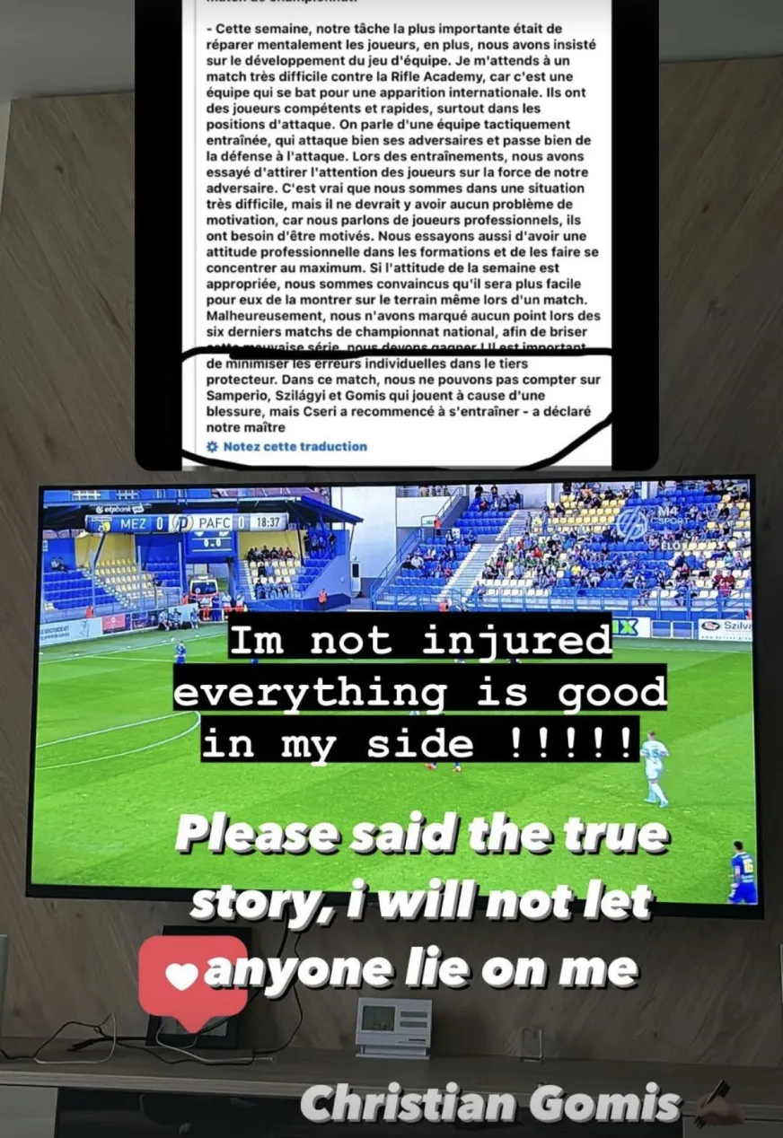 A kövesdiek kispadjára februárban kinevezett szerb vezetőedző, Milan Milanovics az első meccse óta (hazai 1-2 a másik kiesőjelölt Kisvárda ellen) egyszer sem jelölte még a keretbe sem. Gomis a legutóbbi, felcsútiak elleni bajnoki alatt egy 24 óráig látható Instagram-bejegyzésben üzent, hazugsággal vádolva a mezőkövesdieket: