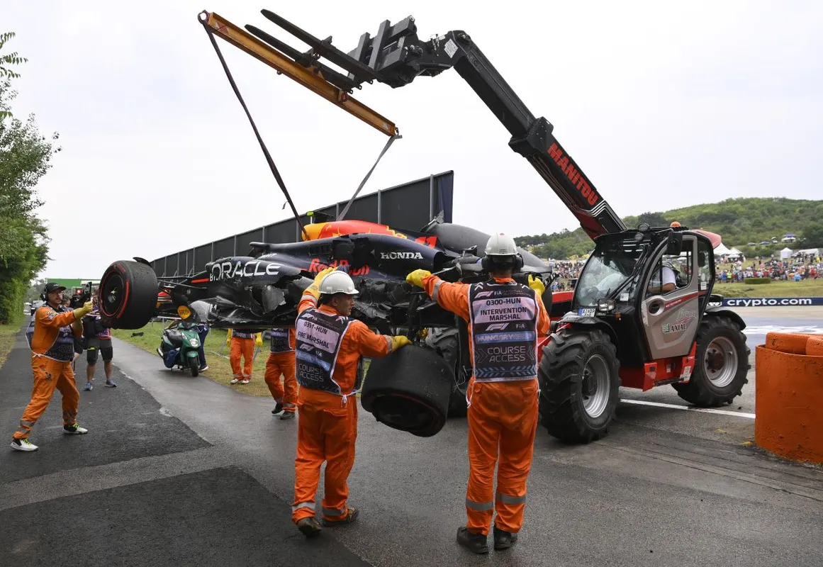 A Forma-1-es Magyar Nagydíj szombati időmérőjén a Red Bull mexikói pilótája, Sergio Pérez már a kvalifikáció első szakaszában a falnak ütközött. Pérez balesete miatt piros zászlóval félbeszakították az edzéstt, s bár a mexikói sértetlenül szállt ki, számára véget ért az időmérő.