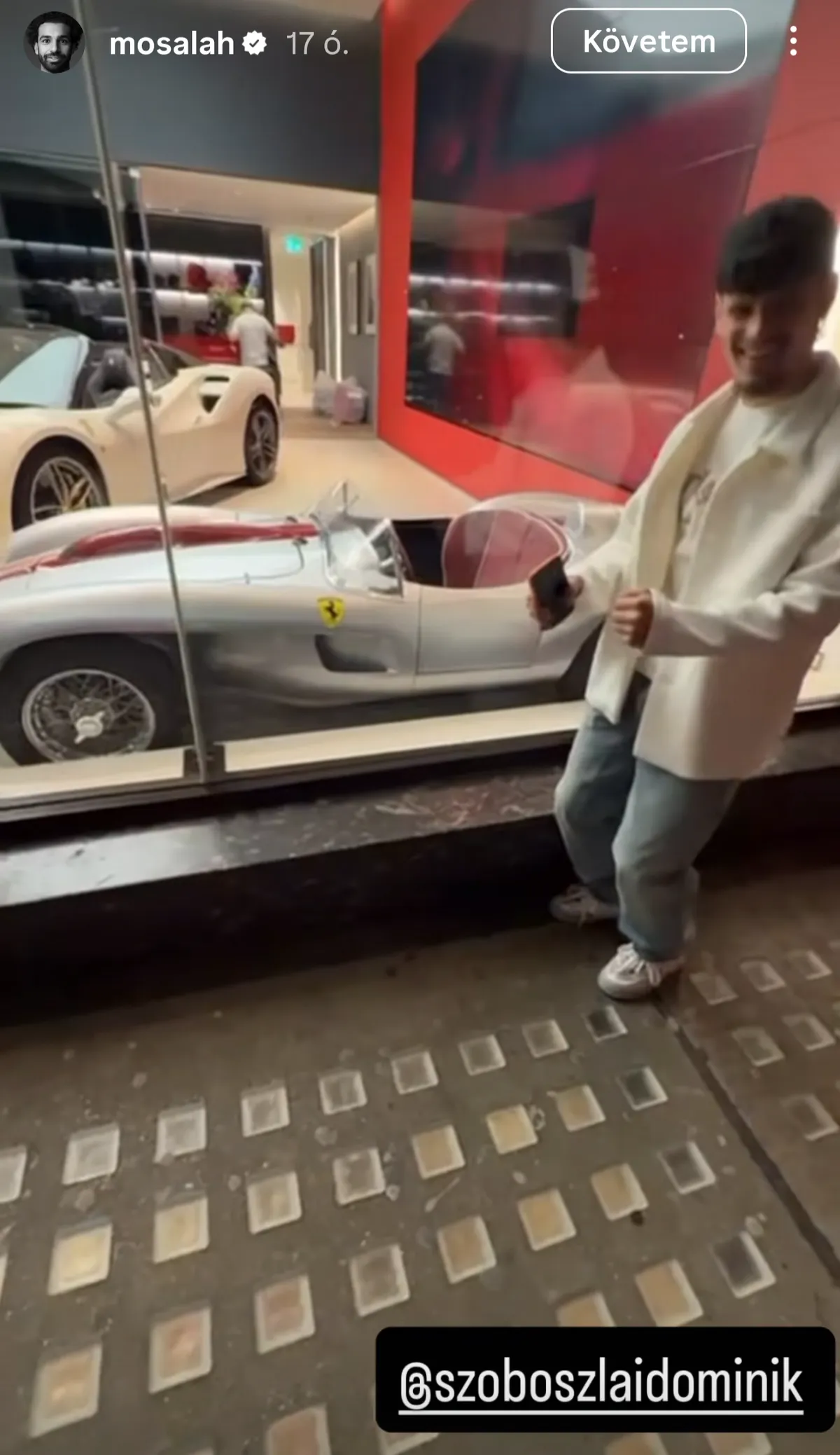 Ellátogattak egy különleges autóritkaságokat bemutató szalonba a Selfridges luxusáruházban, ahol Szalah megviccelte fiatal magyar barátját. Videóra vette Kerkezt egy mini-Ferrari előtt, miközben így szólt hozzá: