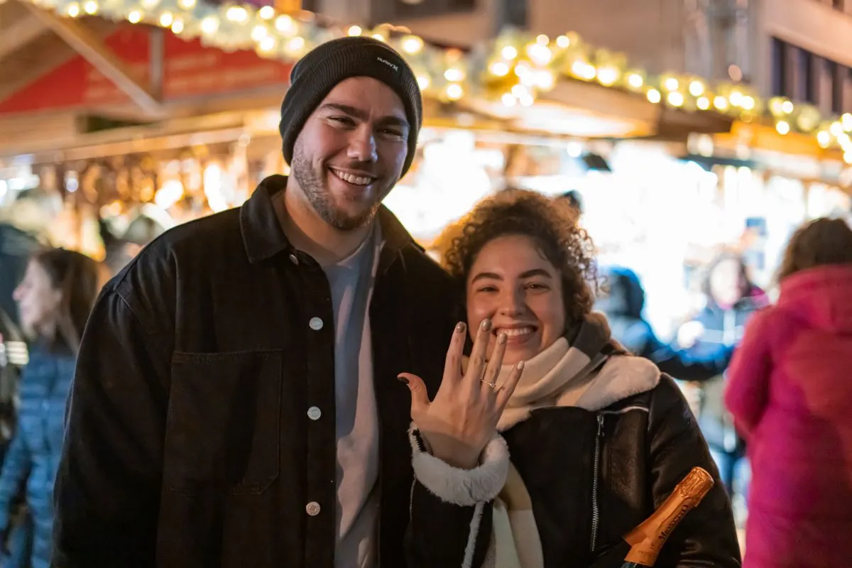 A romantikus pillanatnak a karácsonyi vásár látogatói is tanúi voltak, akik boldogan osztoztak az ifjú jegyespár örömében. A vőlegénynek az Advent Bazilika csapata segített megszervezni a szokatlan meglepetést.
