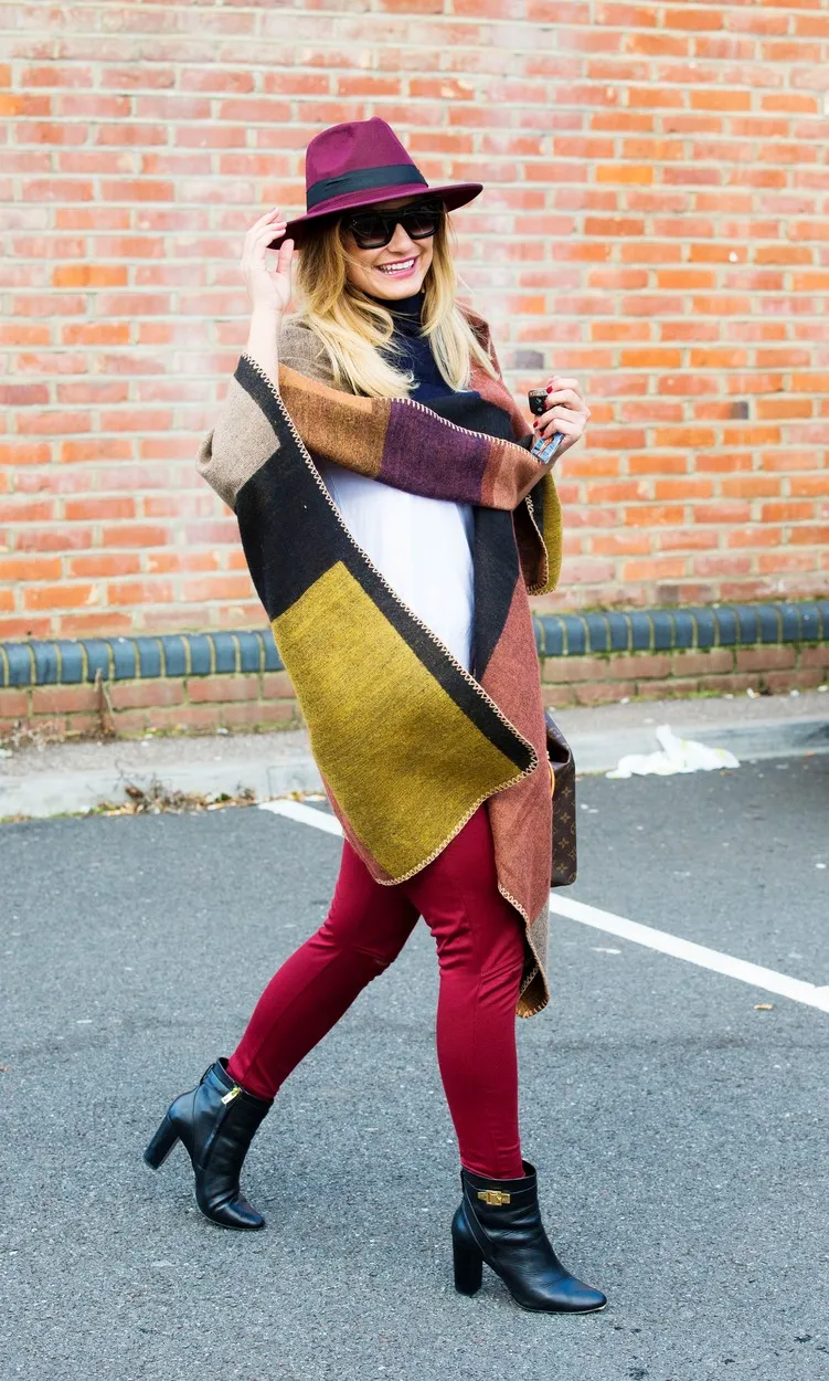 Az egyik fiatalító elem a divatban, ha mersz játszani a színekkel! Egy laza szűk naci, kis bokacsizma és egy színes pelerin ütős választás. Jót tesz, ha be mersz vállalni hozzá egy kalapot is.