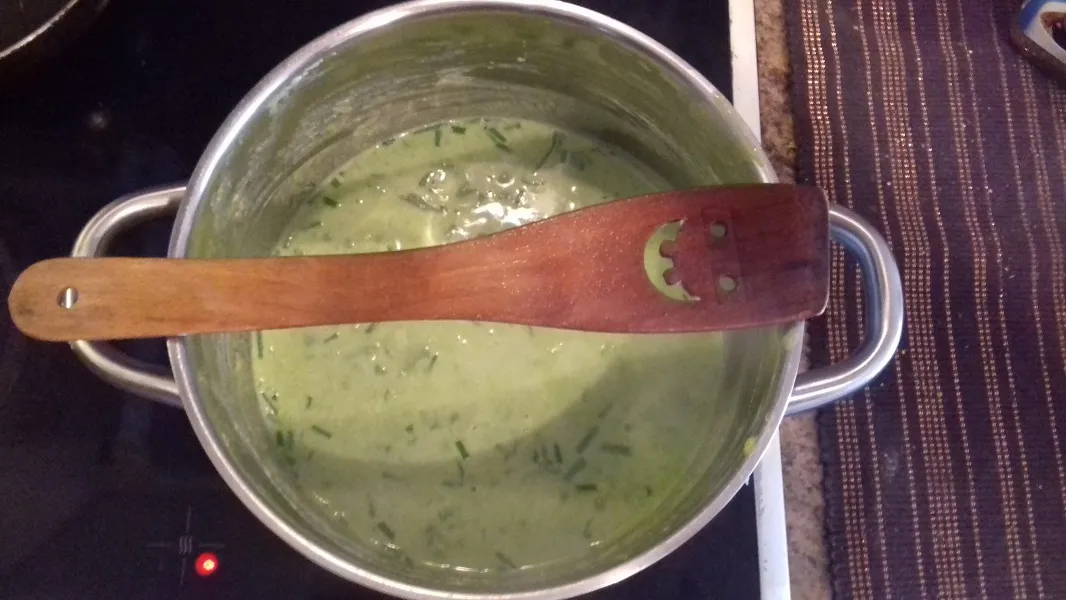 4. Vedd le a tűzről és egy botmixer segítségével kb. 1/10 részét turmixold el. A tűzre visszatéve, még egyszer forrald fel.