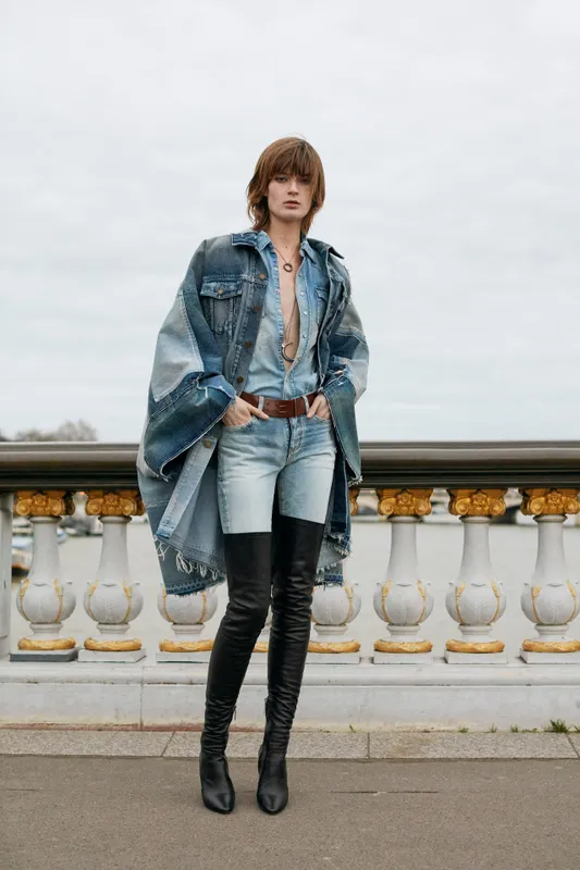 3.Szűk nadrág és ing együtt, farmer a farmerrel kombináció. Különleges , ha még ráveszel egy egyedi tervezésű farmer kabátot. Térdcsizma hab a tortán! Bátraknak ajánljuk.