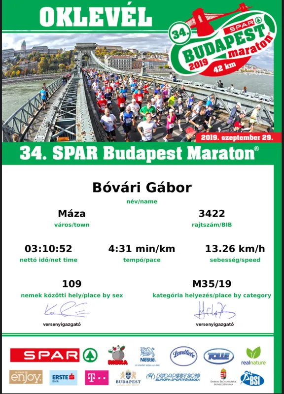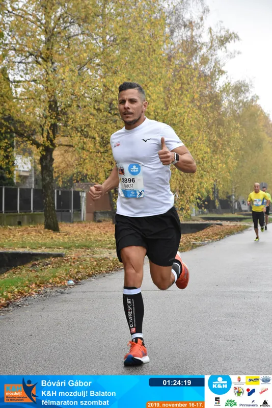Gábor hamarosan félmaratoni versenyeken indult, azt mondja, ezeken átlagos eredményeket ért el. Kezdetben 1:50, majd 1:44-es idővel teljesítette a 21 km-es távot, de nem volt elégedett. Így arra kért egy profi futót, Halász Ádámot, hogy segítsen tovább javítani az eredményén. „A cél az volt, hogy a 2018-as K&H Siófoki versenyen 1:40 alá menjek. A felkészülésre bő egy hónapom volt. Halványlila gőzöm nincs, hogyan, de végül 1:30:34-es eredménnyel értem célba. Hihetetlen volt! Olyan ez az egész számomra, mint egy mese. Egyszerűen a mai napig nem hiszem el, pláne így, hogy tudom, milyen voltam... Ma már gyorsabb vagyok több olyan ismerősömnél, akik már 20 éve futnak!”