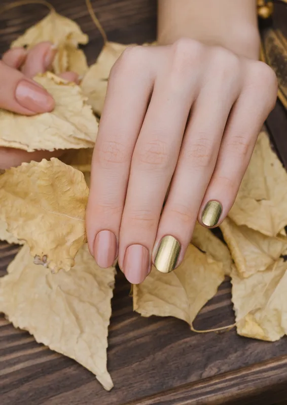 1. Romantikus őszi manikűr, egy kis arany egy kis rózsaszín. Egyszerűen elegáns lesz a kezed.