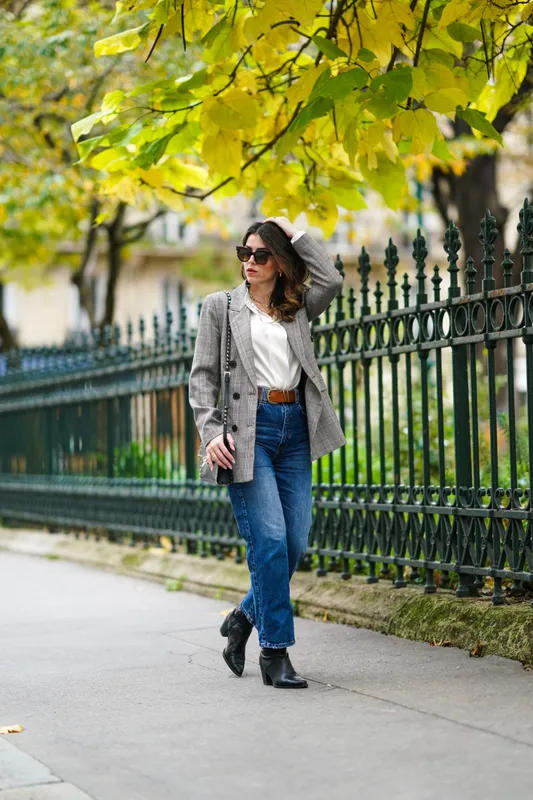 5. Egy blézer, fehér blúz és farmer a munkahelyeden is telitalálat.